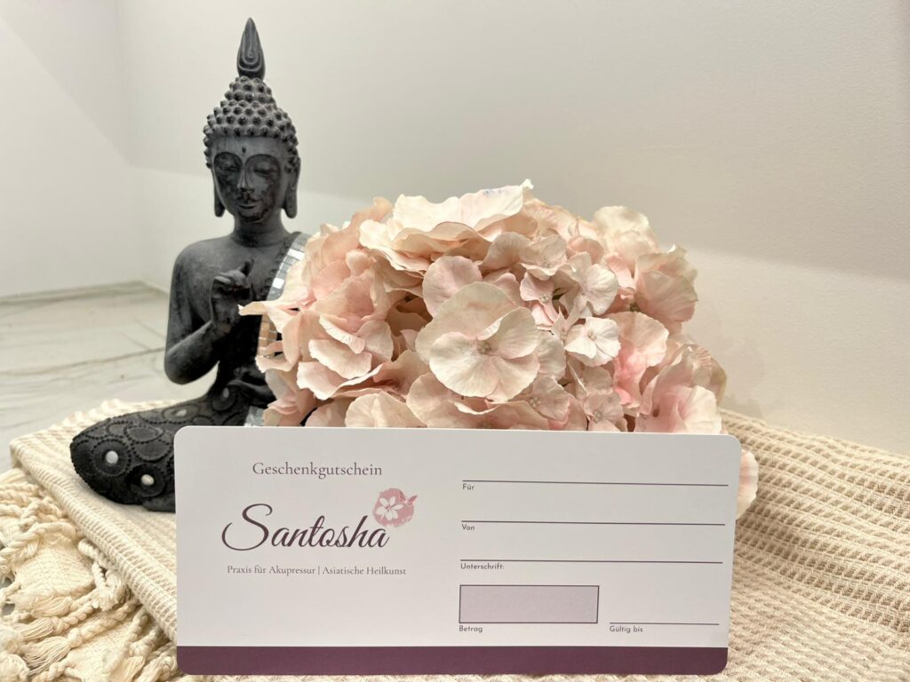 Ab sofort sind in der Praxis Santosha Geschenkgutscheine erhältlich. Ob für eine wohltuende, tiefenentspannende Behandlung oder eine individuell abgestimmte Auszeit – mit einem Gutschein verschenkst du nicht nur eine Behandlung, sondern ein Gefühl des Loslassens und der inneren Balance.